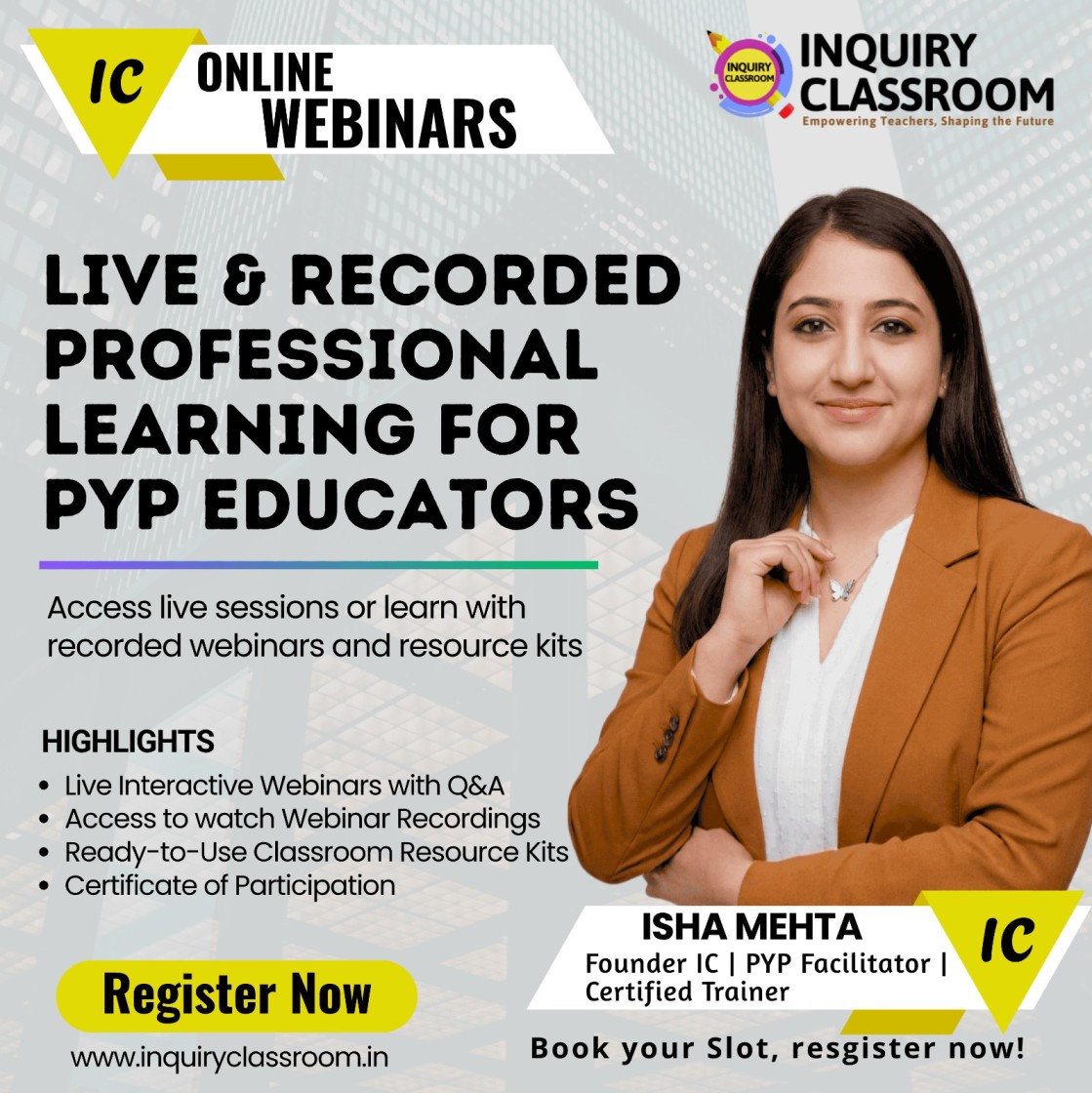 Inquiry Classroom webinars support EYP, PYP, and primary educators from any curriculum with practical, inquiry-based, and classroom-ready professional learning. Our focus is to help teachers understand inquiry, concepts, assessment, planning, and student-centred teaching clearly, apply them confidently, and grow as reflective practitioners. We believe in simple, step-by-step learning that connects professional development directly to real classroom practice